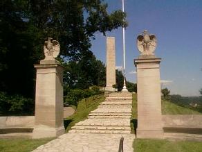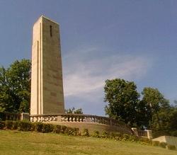 It really is a beautiful monument. Though there is some ugliness back here where I’m sitting. Harrison’s obelisk is engraved with many of his life’s accomplishments. The last one on the back is “Avenger of the Massacre of the River Raisin”. I find that especially ironic given that it’s listed under “Hero of Tippecanoe” and “Victor of the Battle of the Thames”.