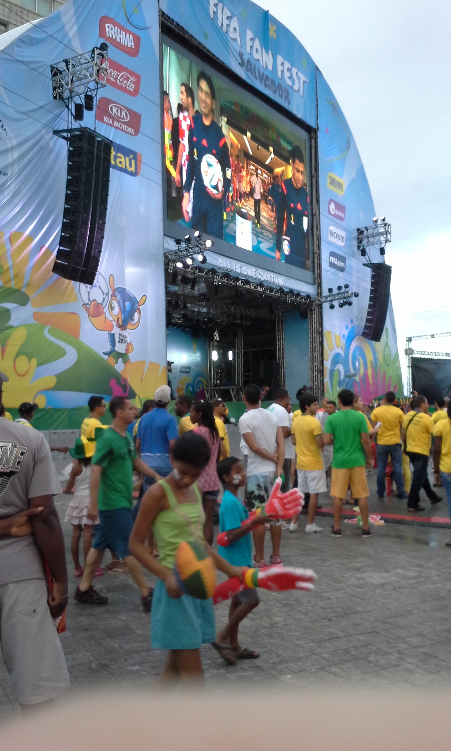 When it came time for the Brazilian national anthem, I tried to sing along. They even put the words as captions on the big screen but I couldn’t get the cadence right. Near the end, it seemed like the music stopped but crowd on the television, the players, the coaches and the crowd around me began singing even louder. The waves were crashing around this little peninsula but they were dwarfed by the waves of pride given full voice by these beautiful people.