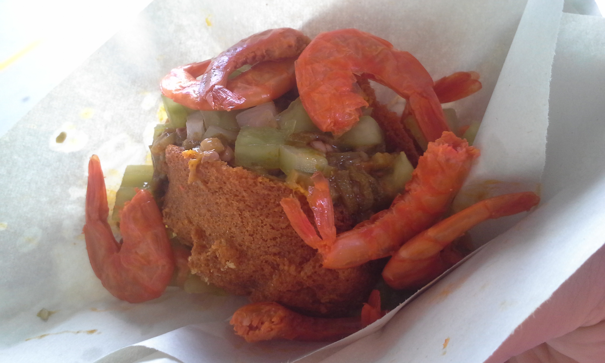 Before I actually entered the stadium, I had my first acaraje. It’s a deep fried ball of mashed black-eyed peas cut in half and served with shrimp and various sauteed veggies shoved inside. It sounds better than it tastes. The lady who sold me the acaraje even asked if I wanted it spicy to which I gave an enthusiastic affirmative, but it was rather bland. I think I’ll stick with the moqueca and feijoada.