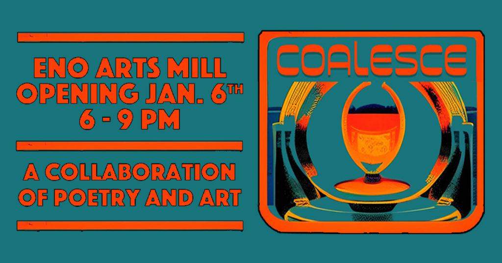For my dear readers who can’t visit the Eno Arts Mill Gallery in Hillsborough, North Carolina, this month but still want to check out the Coalesce exhibit of visuals paired with poetry, you can do it online and even buy the art at Coalesce Broadsides.
